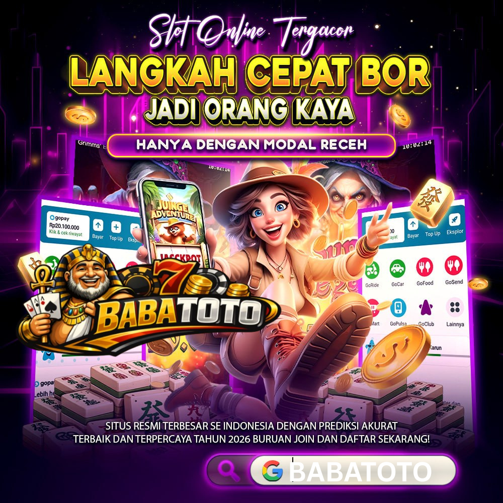 Segera daftar di BABATOTO, situs slot gacor resmi hari ini yang menyediakan mesin Slot777 paling gampang jackpot. Ribuan pilihan game slot dengan volatilitas tinggi dan peluang JP besar setiap harinya. Proses pendaftaran cepat hanya 1 menit, deposit via QRIS, dan withdraw lancar tanpa hambatan. Tempat terbaik untuk yang ingin JP besar dengan modal kecil.